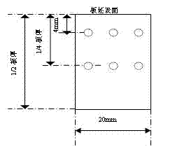 5.2硬度测量部位 在板坯头部的1/4板宽处取20mm(宽度方向)×1/2厚度×30mm(长度方向)的试样,对横截面(20mm×1/2厚度)用金相砂纸进行研磨。在该磨面离板厚表面4mm和1/4板厚处用洛氏硬度计进行硬度测定,测定点数各为3个,其位置如图1所示。