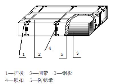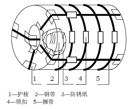 外周包板:避免钢卷外周受外力损伤,防止防锈纸、塑料套、护角受外力破损,减少雨水对钢卷的侵袭。 7.