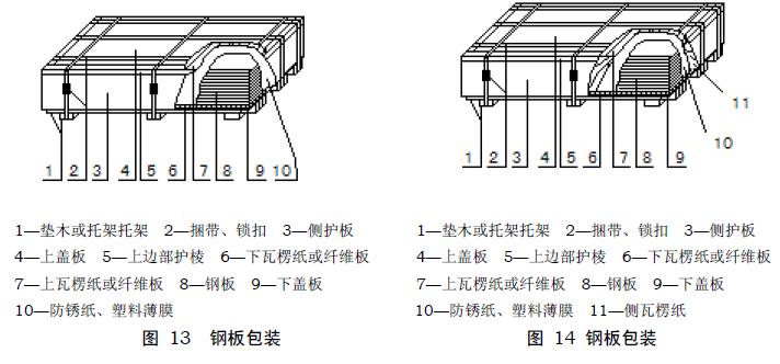 用包装盒帽(下盖板、钢盒盖包裹,或下盖板、浅盒加侧护板包裹); 5. 捆扎道次:至少纵向3道、横向3道; 6.