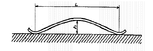 不平度(波浪度)的测量 测量钢带最大波的高度(h)和波长(L),计算得到钢带的不平度(h/L)×100%,如图1所示。 6.5.4