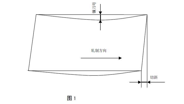 切斜(脱方度)的测量 钢板的的横边在纵边上的垂直投影,如图1所示。