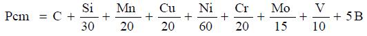 焊接裂纹敏感系数Pcm,% |