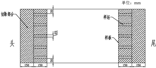图B.1 取样示意图 B.2 试样制备 B.2.1 试样制备时,用线切割机割断样坯单层钢板; B.2.2