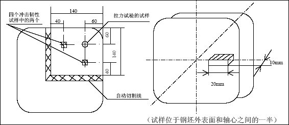 力学和工艺性能检验所用试块从样坯上切取,试块切取部位如图1所示,非金属夹杂试样的切取如图2所示。