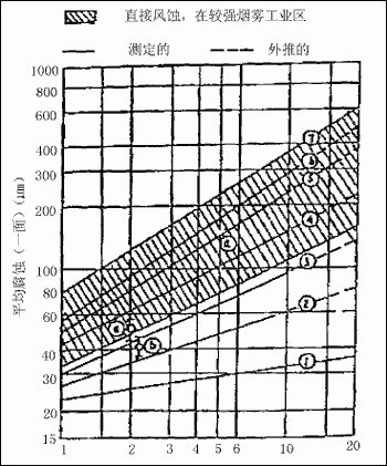 ⑥奥帕豪森(德国),工业大气,挂片向北垂直的。 ⑦从试验结果中导出的包络曲线。