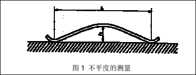 检查尺寸应在距钢带头尾两端大于3m处进行。 6.3 不平度 钢带的不平度h/L不大于2.0%。 6.4 镰刀弯