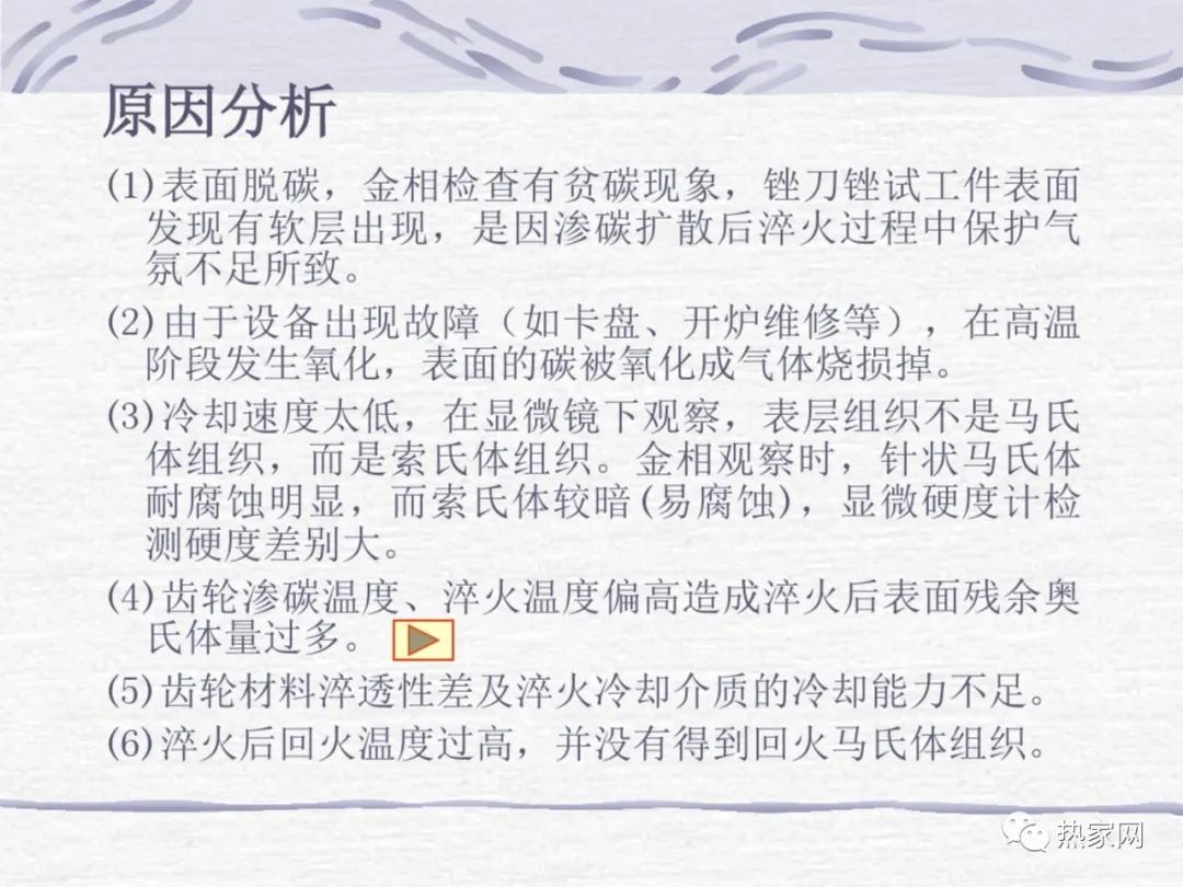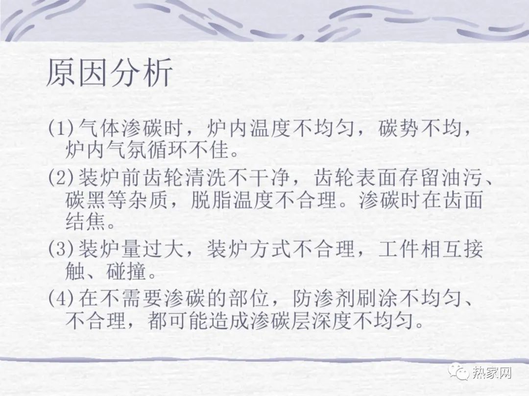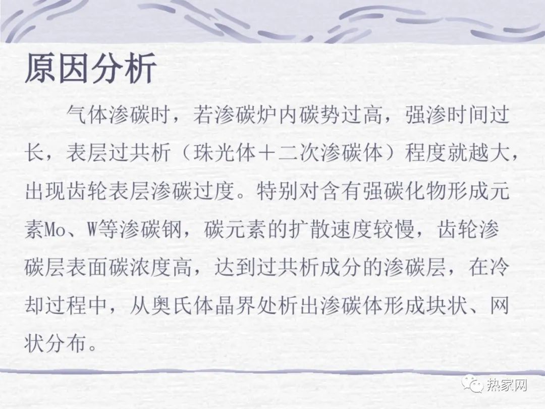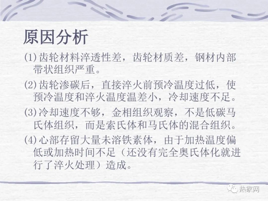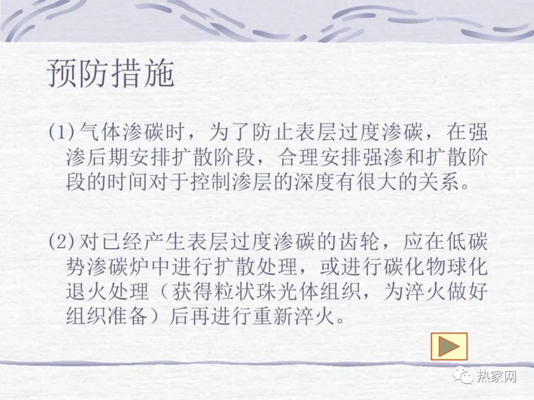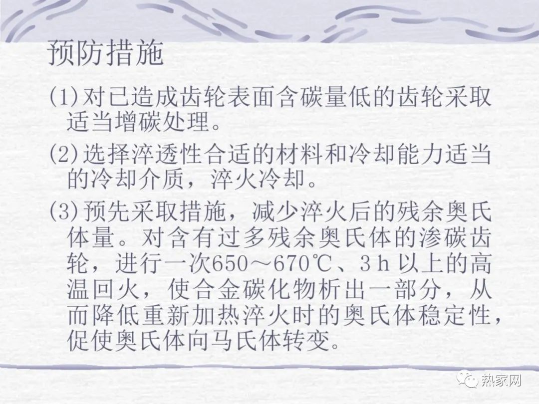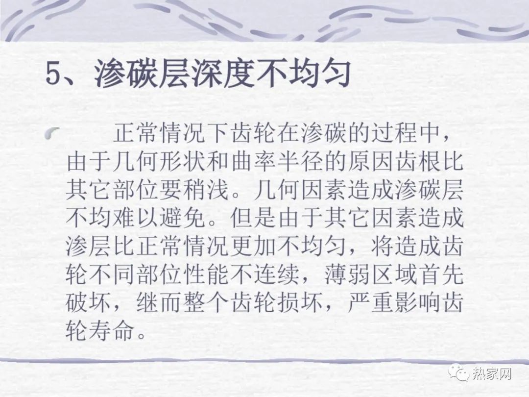 本站之前发表过: 重载齿轮单件渗碳热处理技术-案例分享,浅谈真空渗碳的特性和设备及渗碳后的几种热处理方法,常用Cr-Ni系渗碳钢齿轮的热处理工艺,渗碳后的6种热处理方式,淬火、回火缺陷与预防,有了这些不用找专家了,如何确定渗碳、碳氮共渗热处理工艺过程中的排气时间?,等文章,受到了广大粉丝的好评,所以今天 再给大家分享:渗碳齿轮热处理常见缺陷及预防措施 一组PPT,非常的实用,应该收藏。关键词:热处理,热处理技术,淬火,退火,金相组织,晶体结构,正火,回火,齿轮热处理。
