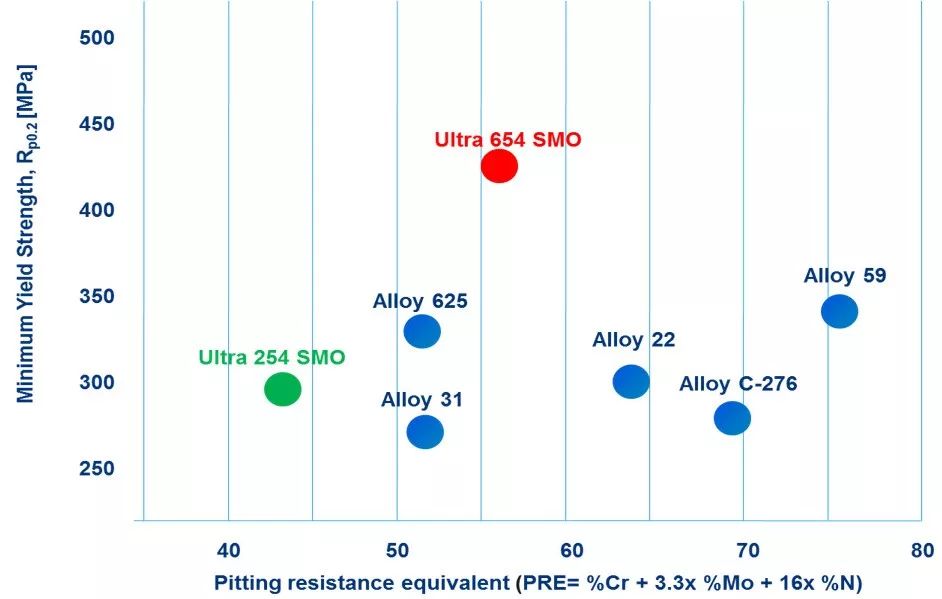 Ultra 654SMO的屈服强度Rp0.2≥430MPa,远高于传统的镍基合金。