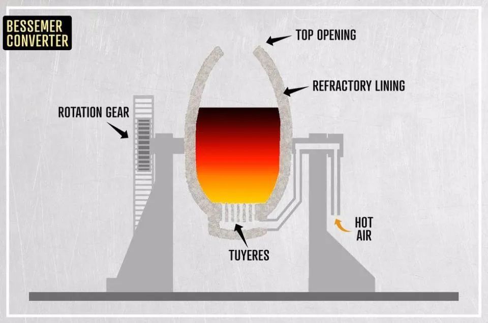 从冶炼厂出来的铸锭更均匀,更坚固,更不易碎 - 这是欧洲乃至世界所见过的最好的钢铁。到1770年代,谢菲尔德成为钢铁制造业的国家支点。七十年后,整个国家都知道这个过程,英格兰的钢铁厂变得光明。1851年,首届世界博览会之一在伦敦举行,这是万国工业作品展。水晶宫是用铸铁和玻璃建造的,几乎所有内部都是用钢铁制成的。机车和蒸汽机,喷泉和灯柱,可以从熔融金属铸造的任何东西和一切都在展出。世界上从未见过这样的东西。Henry Bessemer是一位英国工程师和发明家,因许多不相关的发明而闻名,包括金色黄铜涂料,排版机键盘和甘蔗破碎机。当克里米亚战争在19世纪50年代在东欧爆发时,他建造了一个新的细长炮弹。他把它提供给了法国军队,但当时传统的铸铁大炮太脆而无法开火。只有钢才能处理受控爆炸。坩埚炼钢过程太昂贵,无法生产像大炮一样大的物品,所以Bessemer开始寻找一种大批量生产钢铁的方法。1856年的一天,他决定将生铁倒入容器中,而不是让它渗入沟内。一旦进入容器内,Bessemer就会通过底部的穿孔喷射空气。根据Steel:从矿山到磨坊,一切都保持平静约10分钟,然后突然火花,火焰,熔化的生铁从容器中爆裂出来。当混乱结束时,容器中留下的材料是无碳纯铁。爆炸性冶炼事件的影响很难夸大。当Bessemer直接在熔融生铁上使用波纹管时,与空气中的氧结合的碳爆炸,留下纯铁 - 通过添加含碳材料,如spiegeleisen,铁和锰的合金 - 很容易变成优质钢材。Bessemer建造了一台机器来执行这个程序:“Bessemer转换器”。它的形状像一个鸡蛋,内部粘土衬里和实心钢外部。在顶部,当空气冲入炉内时,一个小开口喷出30英尺高的火焰。然而,几乎立刻,英国的炼铁厂出现了一个问题。事实证明,Bessemer使用的磷铁含量很少,而大多数铁矿石都含有丰富的磷。旧的铁冶炼方法可以可靠地去除磷,但Bessemer转换器没有产生脆性钢。这个问题困扰了冶金学家二十年,直到一位25岁的英国警察职员和业余化学家Sidney Gilchrist Thomas找到解决磷问题的方法。托马斯发现该设备的粘土衬里不能与磷反应,因此他用石灰基衬里取代粘土。它就像一个魅力。这种新方法在20分钟内生产了5吨钢,现在可用于整个英格兰的炼铁厂。旧的亨斯迈坩埚工艺在两周内产生了一个微不足道的60磅钢,已经过时了。Bessemer转换器是新的钢铁之王。在大西洋的另一边,大量的铁矿石矿藏在美国荒野中尚未开发。1850年,美国的铁产量仅为英国的五分之一。但内战结束后,工业家们开始将注意力转向贝塞麦(Bessemer)工艺,这引发了一个钢铁工业,它将产生比1849年加州淘金热更多的财富。在城市之间建造道路,在河流上建造桥梁,以及铺设在狂野西部中心的铁路轨道。