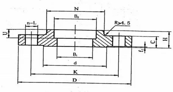 带颈平焊法兰颈部高度较低,对法兰的刚度、承载能力有所提高。与对焊法兰相比,焊接工作量大,焊条耗量高,经不起高温高压及反复弯曲和温度波动。