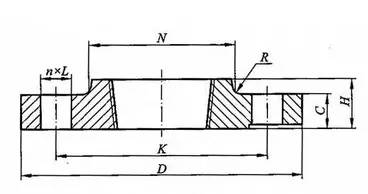 带颈平焊法兰联接指由一对法兰、一个垫片及若干个螺栓螺母组成。