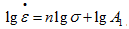 3-1式中A1、n为常数,A1是与材料特性和试验温度相关的常数,n为稳态蠕变速率应力指数。等式两边取对数: