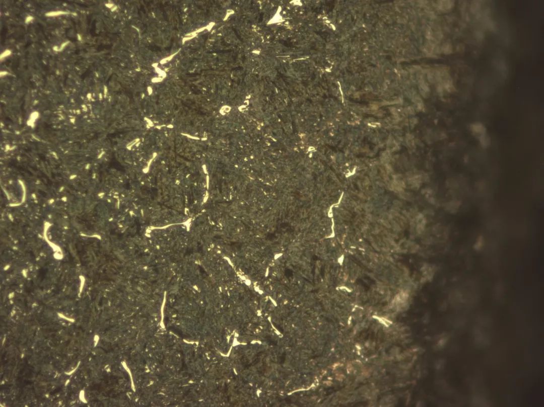 将有碳化物的试样从试样孔放入炉内,在氮气保护下,在925℃碳势Cp=0.7%的气氛中扩散3h后从试样孔取出,空冷。发现原先的碳化物明显减少。如图2所示,证明高温低碳势扩散对碳化物的消除作用比较大。
