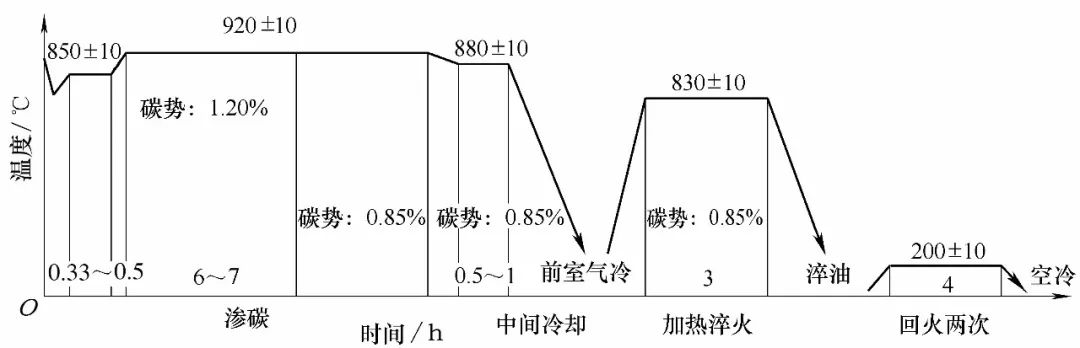 图3 渗碳淬火、回火工艺曲线