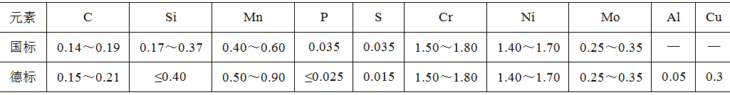 渗碳淬火后性能要求:锻要求(ME)级,渗碳淬火后晶粒度不低于7级;有效硬化层深度6.0~6.5mm,齿面硬度(60+4)HRC,齿芯硬度35~40HRC,齿根也需淬硬;力学性能(ME):σb≥1180MPa,σs≥785MPa,δ5≥8%,ψ≥35%,AK≥41J。