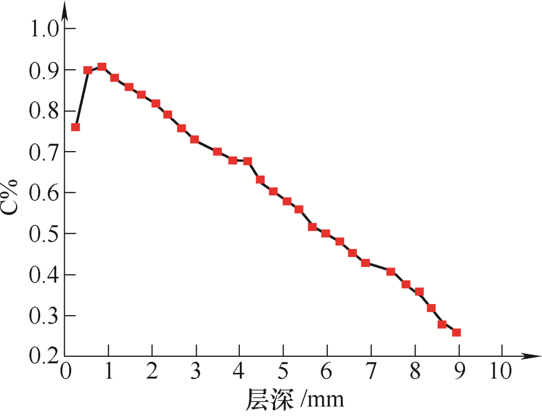 图6 17CrNiMo6渗碳模拟后各渗层碳含量