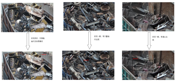 系统将依照客户的人工评级规则,相应地对废钢杂质,渣土及油污,不符合当前级别的碎料等进行识别,并做对应的扣重处理。
