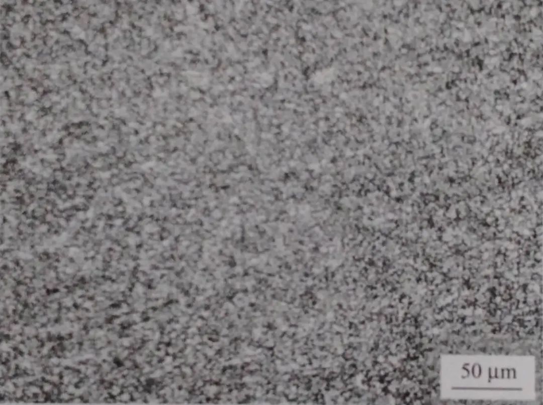距裂纹稍远处的上表层组织为细小针状铁素体和已经变了形的铁素体粗条带(图1-67) 。而下表层组织与中部相同,没有形变组织,为细小针状铁素体(图1-68) 。