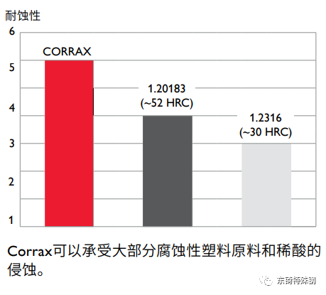 与其它传统的不锈工具钢比较,Corrax具有以下优点: