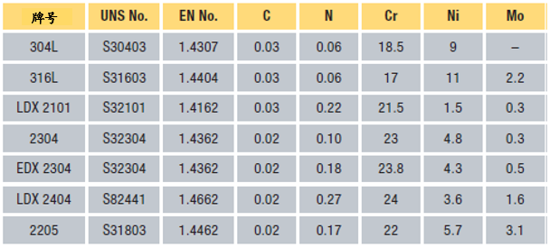 EDX2304是传统的2304双相不锈钢的衍生牌号,与后者相比,其铬、钼(0.5% vs 0.3%)和氮含量较高。这是钢厂为海洋油气行业开发的钢种,目前也用于储罐。此改进型牌号无论是强度还是耐蚀性都优于2304,PREN值确保在28以上,高于2304(PREN值26)。第一个采用该牌号储罐的用户是一家瑞典公司,第二个此牌号储罐项目在荷兰。