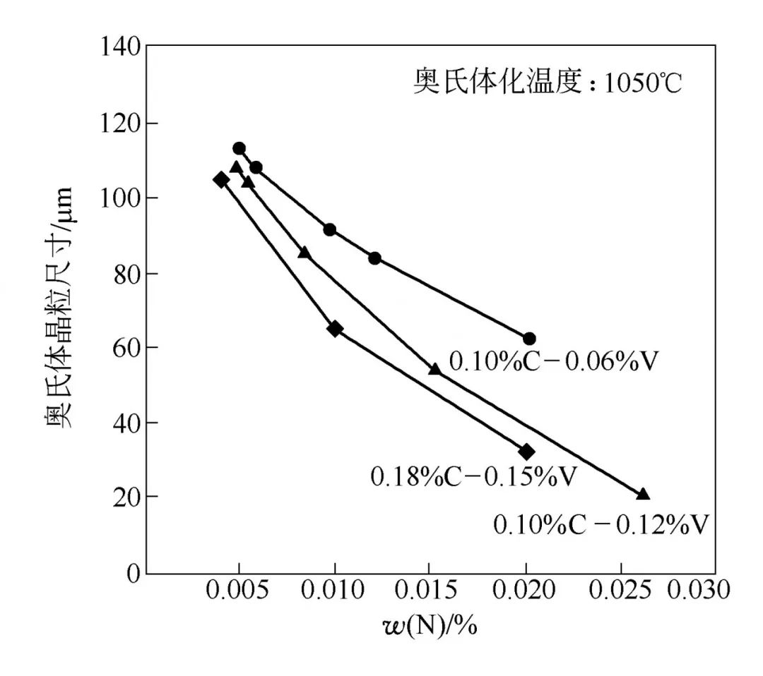 图2 氮对钒钢细化奥氏体晶粒尺寸的影响