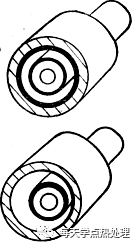 答:管道的安装是水泵选择离心泵,选择规范见表2-7: 表2-7 选择淬火液的水泵规格对照表 设备功率(KW) 10 30 60 100 150 200 250 400 500 水池容量 (m3) 5 10 15 25 30 40 50 60 70 水泵口径/扬程(φmm/m) 25/15 25/20 40/20 40/25 50/25 25/30 65/30 100/50 100/60 答:表面淬火是强化金属材料表面的手段之一,凡能通过淬火进行强化的金属材料,原则上都可以进行表面淬火。经表面淬火的工件不仅提高了表面硬度、耐磨性,而且与经过适当预先热处理的心部组织相配合,可以获提良好的强韧性、高的疲劳强度。 1)感应热处理是热处理工艺发展方向 ①表面淬火工艺时间短,可以实现数字化精确控制,工艺流程简单、可以完成淬火、回火工序,设备的机械化自动化程度高,现代化的感应淬火设备已经安排在冷、热加工生产线或自动生产线中。因而有高的生产率等优点。 ②热处理淬火强化效果显著、热处理变形小、减少后续加工余量,达到节能降耗的效果。 2)感应热处理是最节能的热处理方法 由于热处理感应设备的进步,感应热处理的节能效果明显,是最经济、最节能的热处理方法。我国某地区单项热处理工序能耗综合测定结果,见表2-8。 高中频感应淬火的平均耗能数值只相当于高温回火的耗能数值,其余13项各种热处理工艺的耗能数值是高中频感应淬火耗能数值的2~20倍。在热处理生产中能耗占可变成本的80%,因此感应热处理节能的经济效果是十分可观的。 3)感应加热表面淬火的零件,淬火层能形成相当大的残余压应力,其最大值可达539~784MPa,实践证明零件的疲劳强度与其表面压应力值有明显的对应关系,即压应力大,疲劳强度和疲劳寿命提高。现以解放牌汽车半轴为例,经调质处理的半轴表面残余压应力是245~343MPa,中频感应淬火的半轴表面残余压应力是343~539MPa,在扭矩7811k·m作用下,前者的疲劳扭转寿命为(18.96~42.3)×104次,后者为(112~300)×104次,提高了6~7倍。前者的疲劳强度为162.68MPa,后者为311.64MPa,疲劳强度提高了92%。 故在生产上应用极为广泛。 4)感应热处理是清洁型热处理:由于淬火介质的发展,感应淬火加热可以不采用油类冷却介质,而使用水溶性介质淬火,以及清水淬火、甚至风冷淬火,可以达到无油烟的环境。 5)感应热处理可以实现局部热处理,替代盐浴炉局部淬火,减少污染,提高环境质量。 答:①感应加热的原理是:电磁感应、集肤效应、热传导三个基本原则。 感应加热用一个模拟的单匝短路次级线圈来说明。图2-19以圆柱体加热的方式为例,工件和感应器的组合可以看作是一台具有多匝初级线圈(感应器线圈)和单匝短路次级线圈(圆柱体工件)的变压器,初级线圈和次级线圈彼此间由较小的空气间隙隔开。通电时在工件内将产生频率相同、方向与感应器中相反的感应电流,即涡流。当电流频率较高时,由于表面效应的作用使涡流集中在工件表面,产生“集肤效应”。 图2-20 感应电流沿工件截面分布 I0—工件表面的电流密度 ⊿—电流的透入深度 感应电流密度从加热工件的表面至中心是逐渐降低的,而电流的频率越高降低的比率也越大。电流密度的这种降低率也取决于被加热材料的电阻率和相对导磁率两个物理量。图2-20=表示感应电流的分布随透入深度而变化以及控制电流分布的因素。电流密度大约降到表面电流密度值的三分之一处的深度即为“集肤深度”。 工程上规定,从表面到电流为 Io/e(e=2.718)处的深度为电流透人深度△。 △= 5.30×104×,mm (2-11) 式中 f ——频率,Hz; μ——工件材料的磁导率,H / m; ρ——工件材料的电阻率,Ω•cm。 经计算证明:86.5%的热量产生于深度为△的薄层内。 ②感应加热的四个效应和导磁体的“驱流”作用 1)表面效应。当交变电流流过导体时,电流密度沿着导体截面的分布是不均匀的, 2)邻近效应。高频电流通过两个相邻导体时,若电流方向相反,电流从两导体的内侧流过;若电流方向相同,电流则从两导体的外侧流过。这种现象称为邻近效应,如图2-21a)所示。 3)环流效应。高频电流流过环形导体时,最大电流密度分布在环形导体的内侧,这种现象称为环流效应,如图2-21b)所示。 4)尖角效应。当感应器与工件之间的间隙相同时,工件的尖角处易集中磁感应线,而使感应电流密度过大,以致在工件的尖角处产生过烧,这种现象称为尖角效应。 5)导磁体的“驱流”作用。感应加热表面淬火时,环流效应使高频电流密集在感应器内侧,对工件外表面的加热有利。但对工件内孔加热时,感应器的效率低,为此,往往在感应器上放置导磁体,将电流“驱”向感应器的外侧,因此,导磁体的实质是改变磁感应线方向。 一般高频常用的导磁体为铁氧体,又称为铁淦氧磁体。中频常用的导磁体为矽钢片或软铁状的导磁体。 图2-21 高频电流在导体内的邻近效应 a)相邻导体电流走向相反,高频电流沿内侧分布; b)相邻导体由于间隙不同对邻近效应影响; c)相邻导体电流走向相同,高频电流沿外侧分布; d)由于导体与工件不同心使加热层不均匀 众所周知,感应加热淬火就是利用电磁感应在工件内产生涡流而将工件进行快速加热,而后急冷的淬火方法。感应加热淬火根据加热频率不同,可分为超高频(27MHZ),高频(200-250KHZ),中频(2500-8000HZ)和工频(50HZ)。由于电流频率不同,加热时感应电流透人深度不同。使用高频时,感应电流透入深度很小(约0.5mm),主要用于小模数齿轮和小轴类零件的表面淬火;使用中频时,感