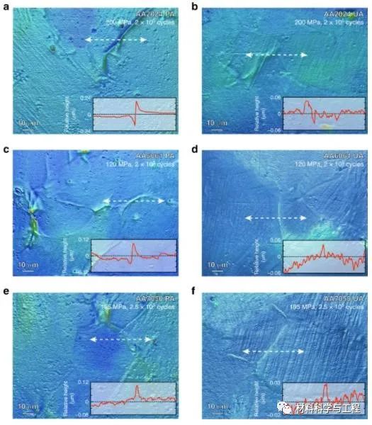 可以看出,本文是提出了提高铝合金疲劳性能的一种方法,应用一种特定的循环训练方案,通过动态析出来修复PFZ,以减小晶粒内部与PFZ之间的强度差。在0.2Hz时进行完全反向循环(R=-1)训练,AA2024进行450个循环;AA6061进行700个循环;AA7075进行450个循环。训练后AA2024合金的疲劳寿命提高了一个数量级;与PA状态相比,受过训练的AA7050的寿命提高了25倍,疲劳强度接近抗拉强度的1/2;AA6061改善较少。