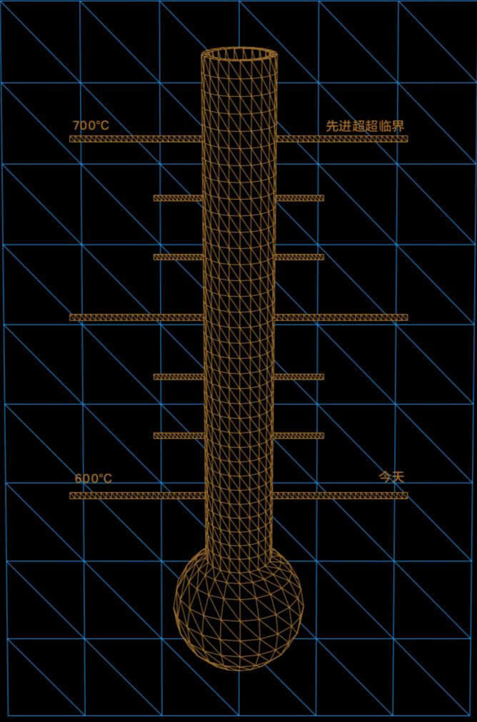 超超临界机组是现代新型燃煤火力发电厂的核心设备。比如,根据中国科普博览网的报道,上海外高桥第三发电厂采用蒸汽温度600℃的超超临界机组,1度电只需燃烧274克煤。而700℃高效超超临界燃煤发电技术将为电厂节省更多能源,同时该技术还大大降低了粉尘、二氧化碳等的排放量。