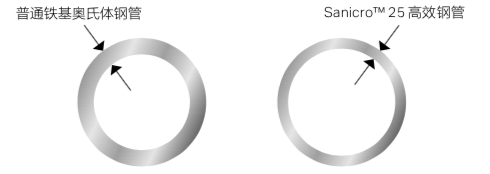 面对这个难题,以前电厂的设计人员只有两种选择,要么升级至镍基合金管,要么增大奥氏体材料管的壁厚。这两种方案要么成本高,要么不够好。现在山特维克专为清洁和高效燃煤电厂锅炉而设计的Sanicro 25来了。它具有更薄的壁厚,更高的性能,已在不同的欧洲国家的锅炉中测试安装五年,表现极为出色。