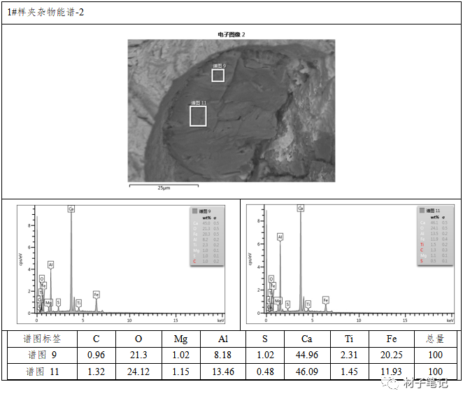 夹杂物为导致压弯性能不合格主要因素,呈单颗粒圆形,属于Ds类,尺寸比较大,冶炼过程可能存在下渣。从夹杂物元素看,可能有CaO·Al2O3混合物、MgO、硫化物,属于炼钢较常见类型。需控制精炼过程,得到更纯净钢材。