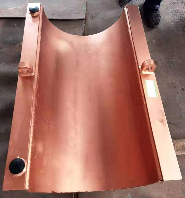 2 高炉铜钢复合渣沟槽结构 铜钢复合渣沟槽,涉及钢铁冶炼附属装置技术领域,内弧面采用铜板模压制作,表面喷涂新型耐磨耐高温涂层。外弧面采用钢板模压而成,内部设计有冷却水道,各组件采用特种金属焊接技术进行铜钢焊接。铜钢复合渣沟槽两端设计进出水口连接高炉冷却水循环系统。 通钢复合渣沟槽结构图 3 效益对比 以渣沟长度20米为例进行计算,原采用耐火材料筑衬的渣沟槽,平均每2-3个月需要检修一次,每次用料约5-6t,检修材料与人工成本在12万左右,每年费用至少50万元。采用铜钢复合渣沟槽采,用铜钢复合材料,内部设计隔板和水流通道形成的水冷结构,有效使用寿命由原来的3月延长至1-2年,极大延长了渣沟槽使用寿命,降低检修成本,而且还显著降低了渣沟槽检修频率,避免无计划生产停顿,直接提高经济效益。 4 改造后效果 对晋南钢铁渣沟局部采用铜钢复合渣沟槽进行应用,通过一段时间运行,渣沟实际使用效果良好,排渣较为顺畅,渣沟槽表面未有烧损及冲刷磨损现象发生。 5 结束语 晋南钢铁渣沟采用铜钢复合渣沟槽改造后,经过生产实践,使用情况良好,证明通钢复合渣沟槽的应用是成功的。从方便作业、降低消耗、提高产能方面都有明显效果,对今后大型高炉渣铁沟的设计、施工及生产管理有一定的参考价值。