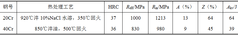 表4 20Cr钢和40Cr钢热处理后的力学性能对比