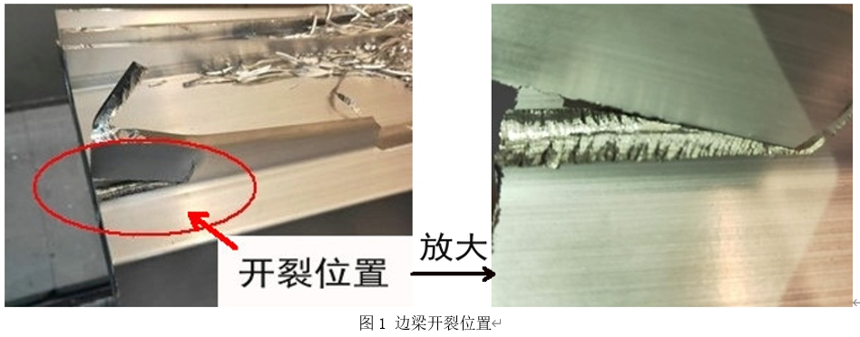 (1)型材开裂的主要是由于机加工工艺不当,造成型材端部翼板受到较在交变弯曲应力与振动作用所致。