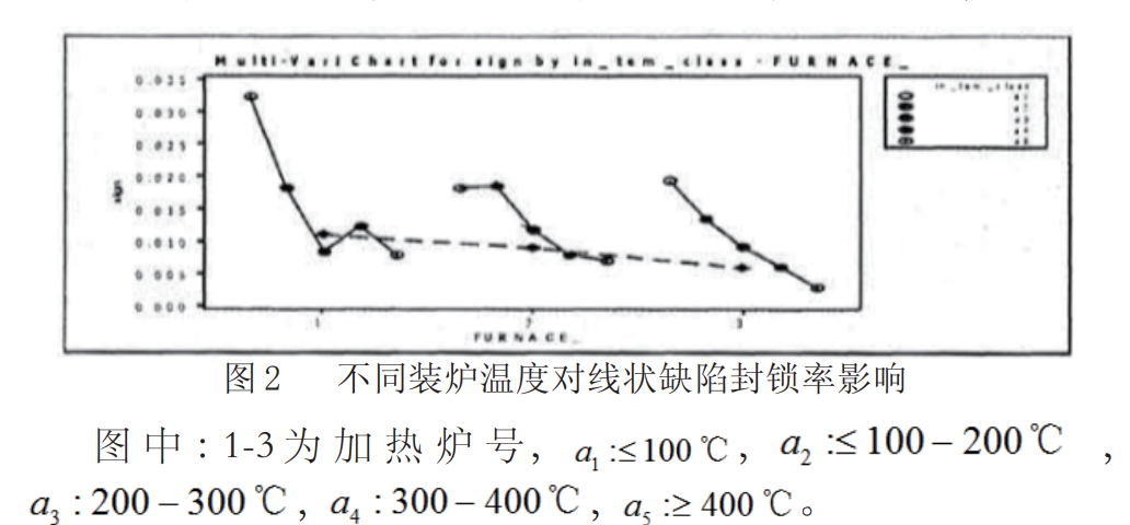 上图 3 为不同热炉和出炉温度对线状缺陷封锁率的影响。