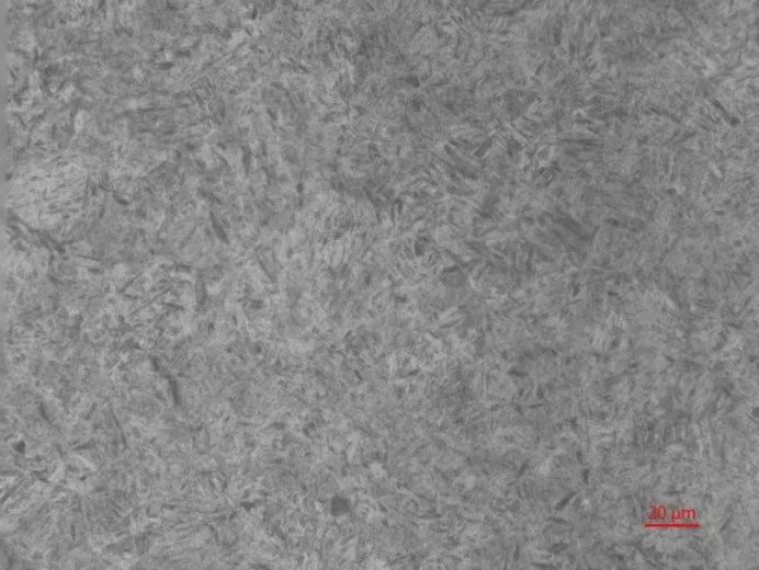 试样腐蚀后的组织为回火索氏体+少量的细条状铁素体,如图3所示,依据GB/T13320—2007进行评级,结果显示回火组织评级为2级;在调质位置进行硬度检测,结果为270~280HBW,均满足图样要求(调质组织≤4级,硬度262~302HBW)。