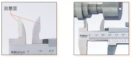 各类卡尺的详细使用方法来啦,收藏起来慢慢看! M型标准卡尺 ABS数显卡尺 卡尺的刻度读法 游标卡尺 分度值 0.05mm ①主标尺读数 16 mm ②游标尺读数 0.15 mm ———————————————— 读数值 16.15 mm 注意:②0.15mm是读取的主尺刻度与游标刻度重合的位置。 带表卡尺 分度值 0.01mm ①主标尺读数 16 mm ②表盘读数 0.13 mm ———————————————— 读数值 16.13 mm 卡尺的测量应用 通用卡尺 专用卡尺 窄槽直径测量 管壁厚度测量 卡尺使用注意事项 M型标准卡尺例 使用前的注意事项 1. 使用少量千分尺润滑油擦拭基准端面及滑动部位。 2. 全行程移动尺框,确认是否被卡住等。 3. 清洁测量面后,使其贴合,确认下面的内容: ■外侧测量面:对准光源时,看不到光是正常的。(图1) 有污渍、碎屑或毛刺等不能完全贴合时,有时能看到光。(图2) ■内侧测量面:对准光源时,仅能看到一点光的状态是正常的。(图1) 使用中的注意事项 1. 读取刻度时,请将视线对准正面,注意视差。(图4) 2. 测量时,请使用一定的力量,尽量在量爪根部测量。(图5) 3. 请不要在测量面倾斜的状态下测量。(图6) 使用后的注意事项 1. 使用后,确认各部位有无损伤并将整体清洁干净。 在附着有水溶性切削油等场所使用时,清洁后,请务必进行防锈处理。 2. 将外侧量爪打开0.2~2mm左右,无需拧紧紧固螺钉保管。(图7) 3. 不能在高温高湿、多尘埃及多油污的场所存放。 *如使用数显型卡尺,若长期不使用时请取下电池。