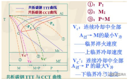 2、热处理的条件:(1)有固态相变(2)加热时溶解度显著变化的合金。3、热处理只能改变铸铁基体组织,不能改变石墨形态。5、奥氏体形成过程(共析钢):(1)奥氏体的形核。(2)奥氏体的长大。(3)剩余渗碳体的溶解。(4)奥氏体中 C 的扩散均匀化。6、钢在加热到 Ac1 以上某一温度时,珠光体处于不稳定状态,通常首先在铁素体和渗碳体相界面上形成奥氏体晶核,这是由于铁素体和渗碳体相界面上碳浓度分布不均匀,原子排列不规则,易于产生结构起伏和浓度起伏区,为奥氏体形核创造条件。过共析钢:Fe3C + P → Fe3C + A → A 注:(F,P 珠光体,A 奥氏体,M 马氏体)8、奥氏体化的目的:获成分均匀、晶粒细小的奥氏体晶粒。① 加热温度和保温时间 T(加热温度)↑、 t(保温时间)↑, A 晶粒长大;T 的影响远大于 t。② 加热速度 常规加热速度下影响不大;快速加热,短时保温的超细化工艺如高频加热,激光加热等③成分 强烈阻碍:Al、V、Ti、 Zr、Nb 原因:形成难溶碳、氮化物;中等阻碍:Cr、W、Mo;促进长大:Mn(降低铁原子的结合力,促进铁的扩散) P 溶入 A 的 C10、 合金钢的奥氏体均匀化的时间要比碳钢长得多。在制定合金钢的加热工艺时, 与碳钢相比, 加热温度要高, 保温时间要长。高温转变产物(A1~550℃) :珠光体( P) ——扩散型中温转变产物(550℃~MS) :贝氏体( B) —半扩散型低温转变产物(MS~Mf) :马氏体( M) ——非扩散型⑤ 马氏体是过冷奥氏体连续冷却中的一种转变组织,非等温转变产物。将其画入,使过冷奥氏体等温转变曲线更完备、实用。12 冷却速度对转变产物类型的影响:可用 VC、VC′判断。当 V > VC 时,A 过冷→M ;当 V<VC′时,A 过冷→P ;当 VC′< V <VC时,A 过冷→P +M13、珠光体的形态取决于加热时奥氏体化的程度(奥氏体成分较均匀时→片状;不均匀时→球(粒) 状)。14、淬火马氏体金相形态影响因素:实质取决于转变温度:高于 200 ℃——板条状马氏体;低于 200 ℃——片状马氏体 。形态与 C%关系:低碳——板条状;高碳——片状 。马氏体特点强度高硬度高 C%↑, 马氏体 HRC↑ 。② 相变强化(亚结构强化) :高密度位错、孪晶、层错;③ 时效(沉淀) 强化:C 向缺陷处扩散偏聚或析出,钉扎位错。16、片状 M:硬而脆;板条 M:强而韧(与亚结构有关)17、板条 M 塑韧性好的原因:①含碳量低, 过饱和度小;② 淬火内应力小,形成微裂纹的敏感度小;高碳片状 M 塑韧性差的原因:① C 过饱和度高,畸变大,②淬火内应力大,形成微裂纹的敏感度高。18、下贝氏体高强度、韧性好原因:下贝氏体中铁素体针细小而均匀分布,位错密度很高,在铁素体内部又沉淀析出细小、多量而弥散的ε-碳化物。19、在奥氏体晶粒较粗大,冷却速度相对较快时,钢中先共析相(先共析铁素体或先共析渗碳体)以针状或片状形态从原奥氏体晶界沿奥氏体一定晶面往晶内平行或规则生长,并与片状珠光体混合存在,该组织称为魏氏体。(冷速较大时易形成,韧性↓↓ ; 消除方法:正火)20、淬火:钢加热到 AC3或AC1以上,保温,V>V 临界 ,M 或 B。回火:淬火钢加热到低于临界点 A1 的某温度,保温后以适当方式冷却到室温的热处理工艺。(1) 调整钢强硬度与塑韧性的配合, 获要求的性能;21、定义:随回火温度提高,淬火钢韧性在某些温度区间显著下降的现象。低温回火脆性形成原因及防止方法形成原因:片状碳化物沉淀理论;杂质偏聚。防止方法:a. 避免在此温度区间回火;b. 使ε→θ 的温度↑ :c. 采用等温淬火.回火脆性形成原因及防止方法特点:a.与回火后冷却速度有关;b. 可逆性. ;产生原因:P、 Sn、 As 、Sb 等杂质元素晶界偏聚。防止方法:注:无论碳钢、合金钢,只要在该温区回火,就会产生低温回火脆性,a. ↑钢纯度;b. 回火后快冷;c. 加入 Mo、 W 等元素;注:碳钢不产生高温回火脆性, 合金钢尤含Mn、 Cr 的合金钢易产生回火脆性。① 显微组织特征不同,下贝氏体为黑针状或竹叶状,高碳马氏体为片状;② 亚结构不同,下贝氏体亚结构为位错,高碳马氏体的亚结构为孪晶;③性能特点不同,下贝氏体具有良好的综合机械性能,高碳马氏体强度硬度高,塑性和韧性差;④相变特点不同,下贝氏体为半扩散型相变,高碳马氏体非扩散型相变。24. 珠光体、贝氏体、马氏体的特征、性能特点是什么?片状 P 体,片层间距越小,强度越高,塑性、韧性也越好;粒状 P 体,Fe3C颗粒越细小,分布越均匀,合金的强度越高。第二相的数量越多,对塑性的危害越大;片状与粒状相比,片状强度高,塑性、韧性差;上贝氏体为羽毛状,亚结构为位错,韧性差;下贝氏体为黑针状或竹叶状,亚结构为位错,位错密度高于上贝氏体,综合机械性能好;低碳马氏体为板条状,亚结构为位错,具有良好的综合机械性能;高碳马氏体为片状,亚结构为孪晶,强度硬度高,塑性和韧性差。退火: 是将钢加热至临界点 Ac1 以上或以下温度,保温以后随炉缓慢冷却以获得平衡状态组织的热处理工艺。目的:是均匀钢的化学成分及组织,细化晶粒,调整硬度,消除内应力和加工硬化,改善钢的成形及切削加工性能,并为淬火作好组织准备。分类:临界温度以上:完全退火、均匀化退火、不完全退火和球化退火。定义:正火是将钢加热到Ac3(或Acm)以上适当温度,保温以后再空气中冷却得到珠光体类组织的热处理工艺。正火过程的实质是:完全奥氏体化加伪共析转变。当钢中碳含量为 0. 6~1. 4%时,正火组织中不出现先共析相,只有伪共析体或索氏体。碳含量小于 0. 