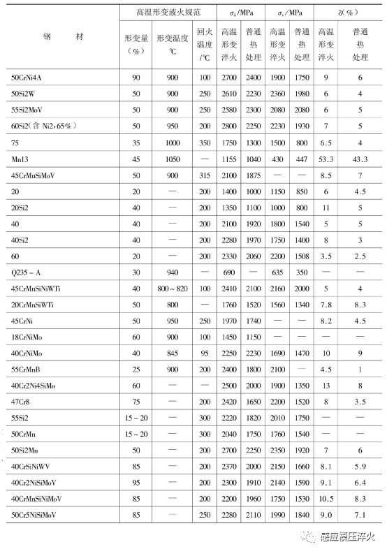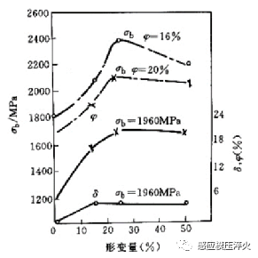一种类型是随着高温形变淬火时形变量的增大,钢材的强度、塑性不断增大,这种类型的钢材如45 CrNiMnSiMoV、40Cr2Ni4SiMo钢等。