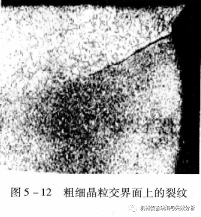 耐热钢和高温合金对晶粒不均匀特别敏感,使得螺栓的持久性能和疲劳性能显著降低,螺栓在装配或工作应力的作用下,裂纹在粗细晶粒交界处产生并扩展。裂纹在螺栓头杆部粗细晶粒交界处产生并扩展特征见下图。