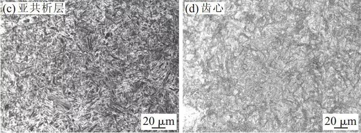 失效齿轮从齿尖至齿心的显微组织见图 3。