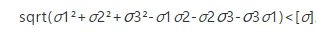 只要最大切应力τmax达到单向应力状态下的极限切应力τ0,材料就要发生屈服破坏。τmax=τ0。依轴向拉伸斜截面上的应力公式可知τ0=σs/2(σs为横截面上的正应力)由公式得:τmax=(σ1-σ3)/2。所以破坏条件改写为σ1-σ3=σs。按第三强度理论的强度条件为:σ1-σ3≤[σ]。