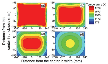 (2) 在连铸过程中,在热力学和动力学的适当条件下,转变反应优先发生在连铸坯四分之一厚处。