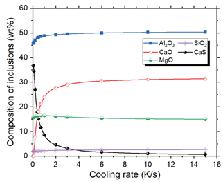 图17 不同冷却速率下连铸坯中夹杂物的组成