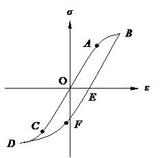 图示材料的拉伸和压缩屈服点为A和C点,则在B点卸载后反向加载的屈服点F处应力值要小于C点的应力值。