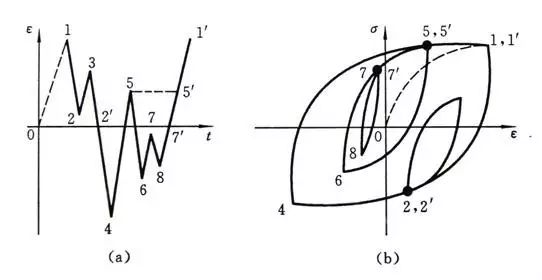 如构件承受的变应变循环如下图,则在稳态下构件的应力应变响应如图示。