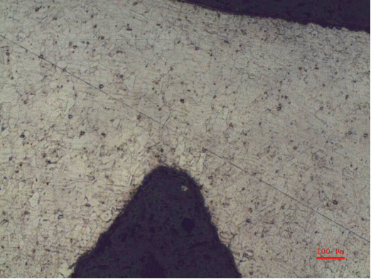如图6、图7所示,自锁螺母的微观组织无过热、过烧现象,晶粒大小均匀,无粗晶或细晶带状组织。另外,组织中非金属夹杂物正常,无超过材料标准规定的杂质。
