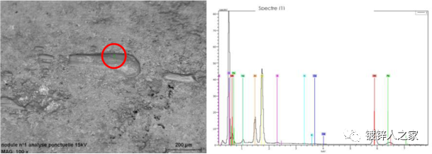 为了找到结瘤产生的根本原因,对结瘤物不同部位进行了能谱分析。