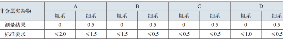 表2 非金属夹杂物检测结果 (级)