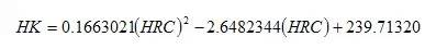 本公式与国家标准实验换算值对照,换算式计算结果与标准实验值之误差为±0.1HRC。