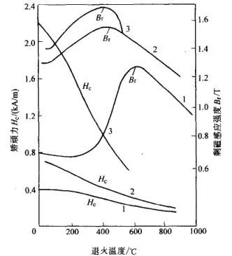 ▲图12 冷加工纯铁的磁性能与退火温度的关系
